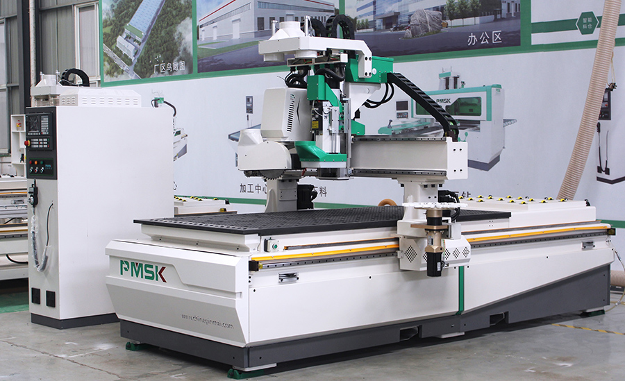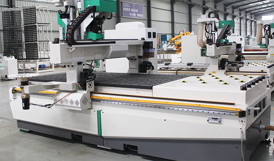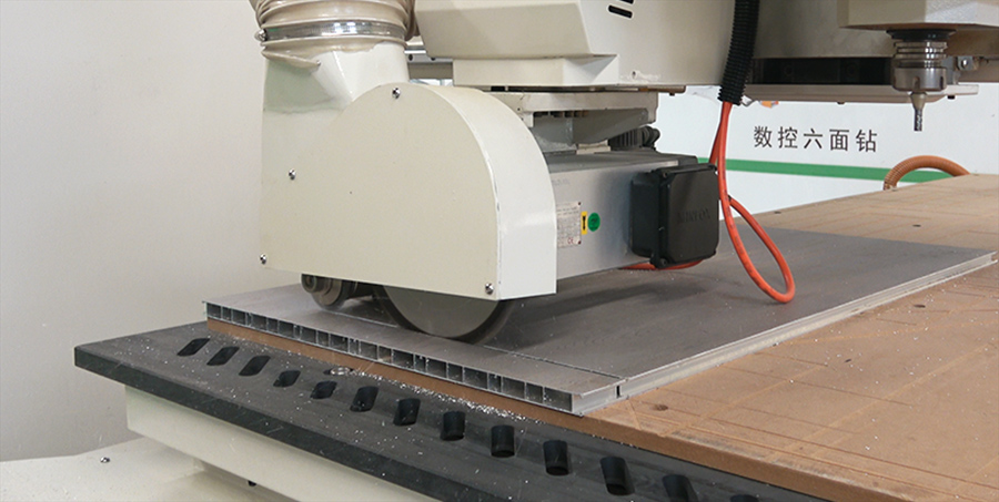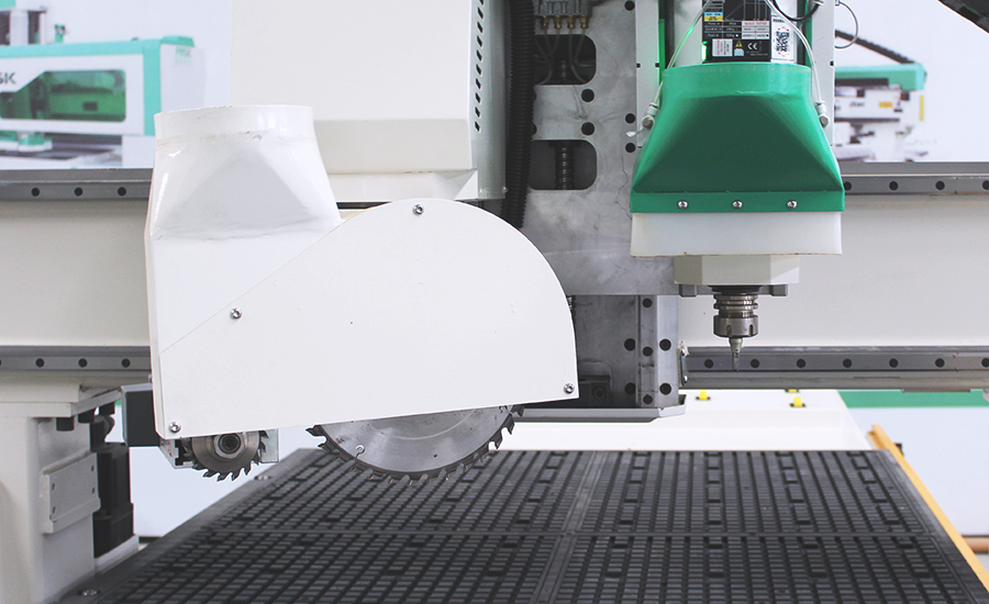 數控四邊鋸加工中心主要用于實木門規方,板式及實木家具生產,全鋁家具下料,非金屬材料的鉆孔、雕刻、切割等工序。機器配備的旋轉鋸可進行任意角度切割,配備的自動換刀主軸搭配大容量刀庫能夠進行雕刻、銑型、鉆孔、切割下料等。