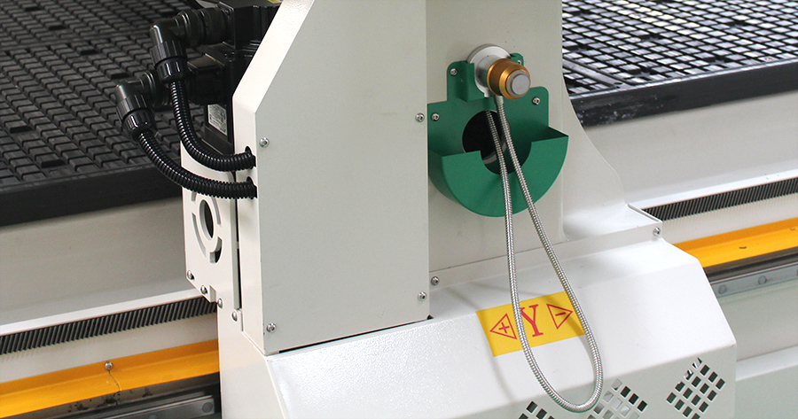 ◆9.0KW大功率風冷換刀主軸,配大容量伺服刀庫,可快速換刀,適合鉆孔、開槽、雕刻及銑刀切割下料等各種加工工藝。