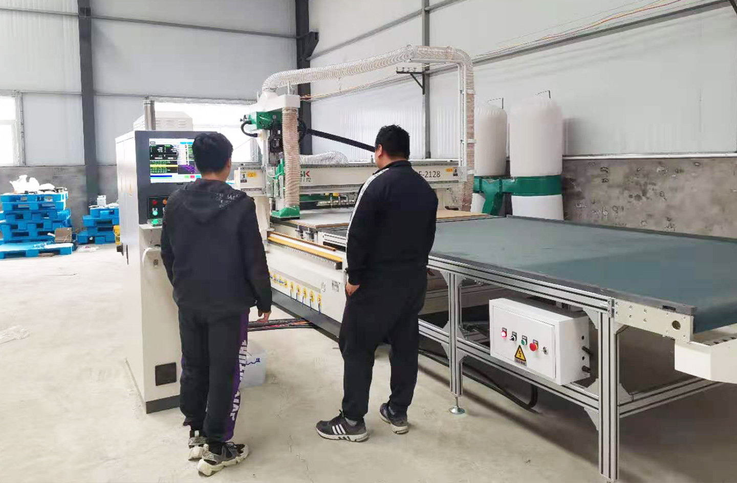 前進前出、前進后出可自行選擇,前進后出模式板件加工完通過回轉平臺傳送到分揀區。