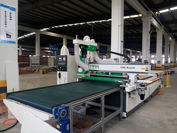 開料機方面推薦兩款機型:1、四工序數控開料機,這款機型屬于一款經濟實用的板式家具開料設備,既可以做柜體又可以做門板。目前四工序數控開料機市場價位從五六萬到十一二萬價位不等,質量和性能差異也很大。好多小型設備廠,拿四工序木工雕刻機當開料機來推廣,這種速度和性能都是比較差的。2、雙工序排鉆數控開料機,這款機型是一款生產效率比較高的機型。機器安裝一個9垂直排鉆的鉆包,通過鉆包打孔速度快的多,但這款機型只適合做柜體。