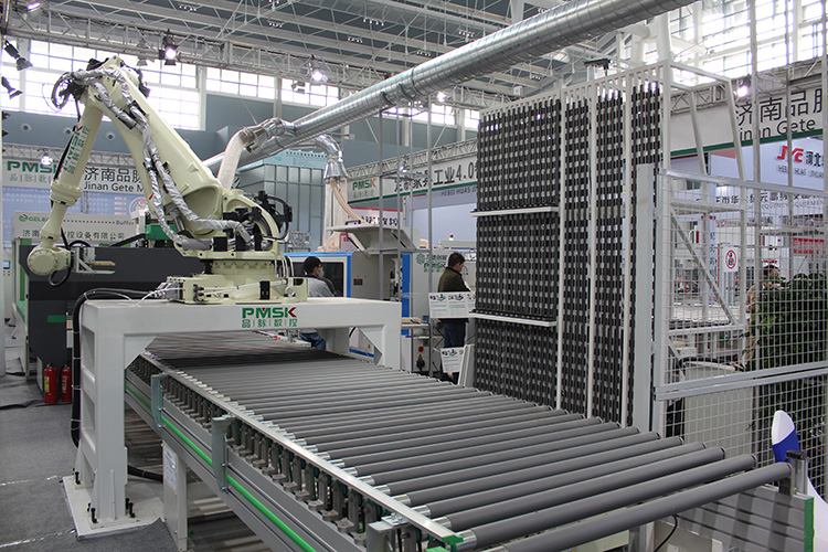 品脈數控定制家具工業4.0主要是以無人化工廠為主,打造工業4.0的生產線,把開料、封邊、鉆孔、分揀、包裝等流程一體化,從而實現無人式的工廠生產模式。整套定制家具工業4.0硬件部分涵蓋開料設備、多軸搬運機器人、封邊回轉線系統、動力傳輸線、龍門抓料機、六面鉆打孔設備、自動分揀系統等通過總控系統與智能軟件控制實現自動化生產。