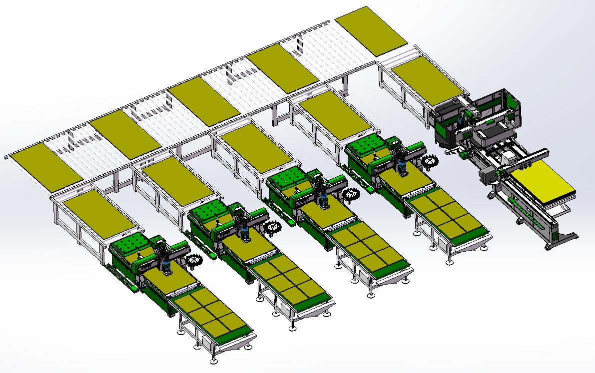 數控排鉆主要用于打垂直孔,水平孔,封邊機用于封四面的邊。軟件主要是用來設計拆單出機器程序的,此外還需要一些小型輔助設備,如拋光機,曲線封邊機等。由于原來簡單的木工加工中心設備配吸塑機的生產線,已經不能滿足現在門板廠批量化智能化的生產需求,所以濟南品脈數控設備有限公司研發了櫥柜衣柜生產線——模壓門板生產線
