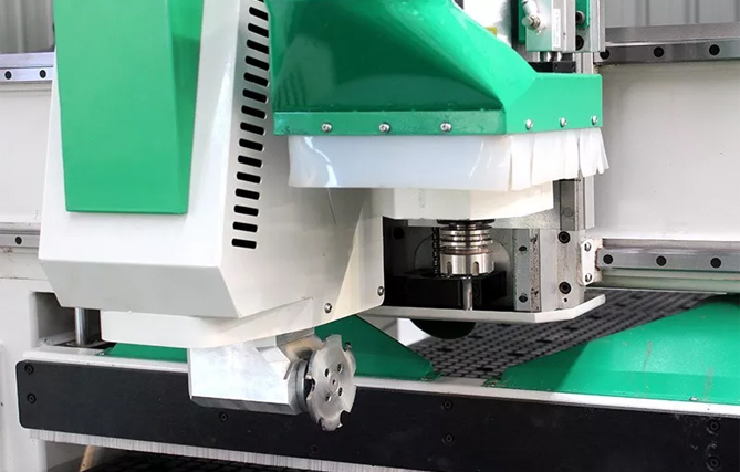 9.0KW大功率風冷換刀主軸,適合柜體長時間高速切割下料、以及各種造型的雕銑加工,進口鋸銑電機適用于拉米諾隱形件開槽加工。