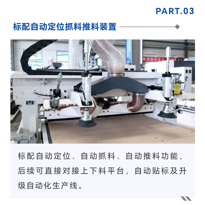 品脈數控EA48G直排換刀加工中心主要用于板式家具柜體以及櫥柜門板的生產加工,設備搭配9KW自動換刀主軸和12容量排式刀庫,一次裝夾可快速實現鉆孔、開槽、銑形、雕刻、切割下料等工序。